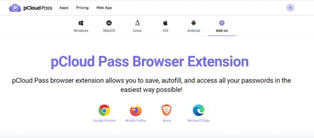 After successfully checking in for the first time, you will be prompted to select the pCloud Pass extension that is compatible with your web browser. To install the extension on your browser, select it from the drop-down menu and then follow the on-screen instructions. We decided to go with Google Chrome.