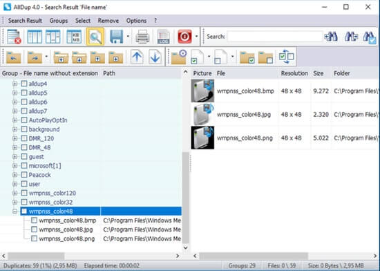 - The tool presents the scan results in groups for the sake of deleting duplicate images, easily.